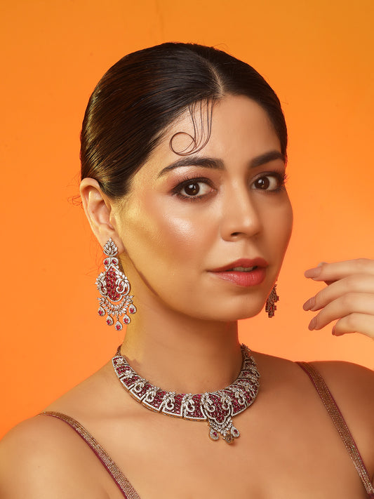 Luxury Ruby Pink Stone Statement Necklace Set with Crystal Detailing