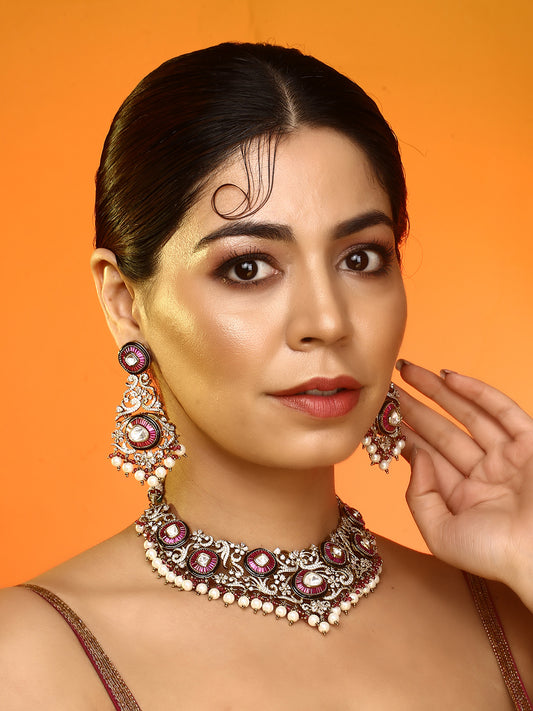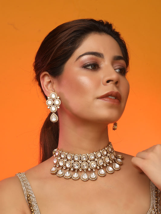 Gold Plated Kundan Polki Choker Necklace Set
