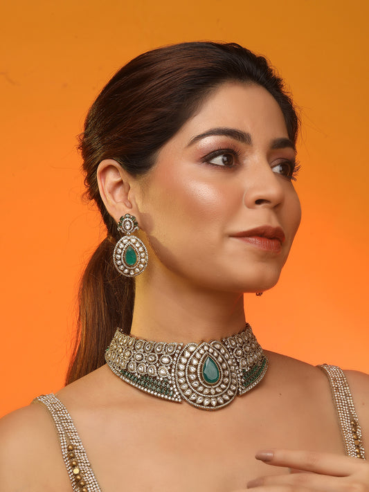 Polki & Green Jade Tumbles Bridal Necklace Set
