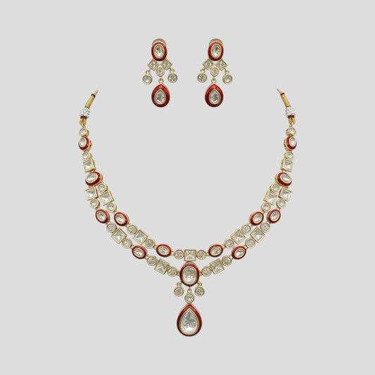Traditional Kundan Necklace & Earrings Set with Red Enamel Detailing
