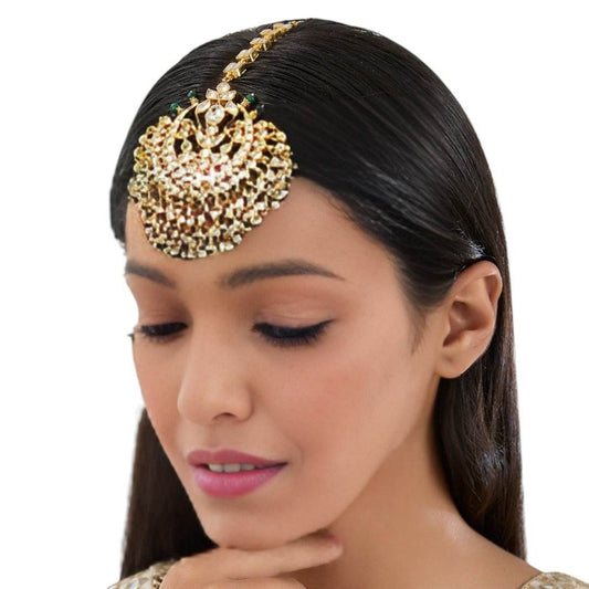 Elevate your bridal ensemble with our exquisite mathapatti, a traditional Indian headpiece...