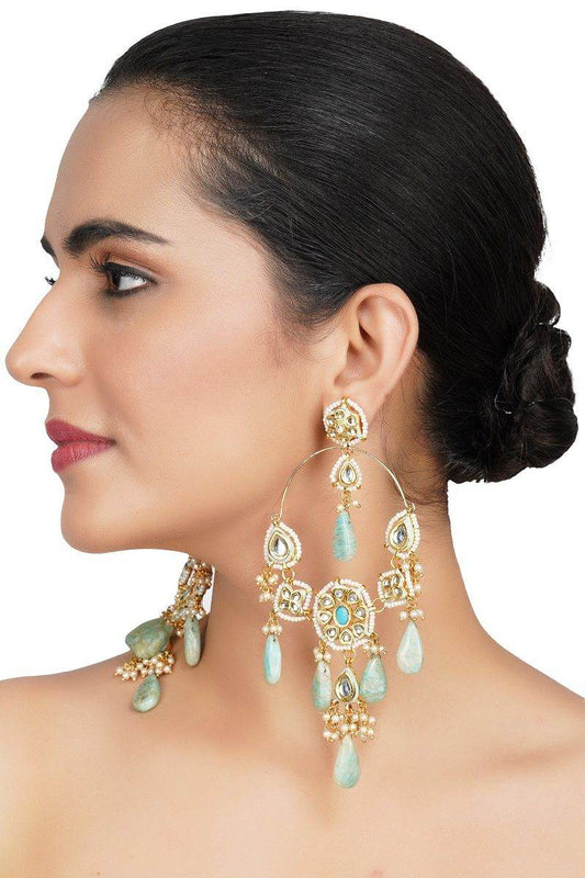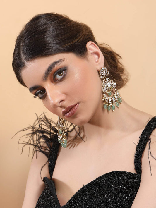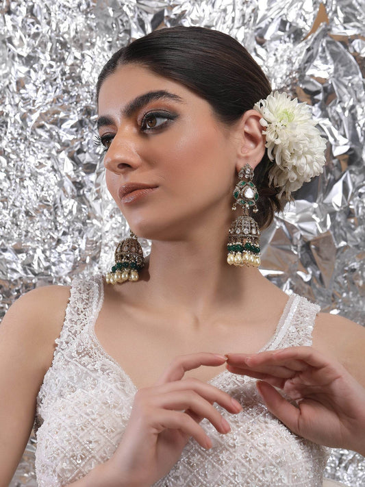 Green & Gold Polki Jhumka Earrings With Jade Tumbles