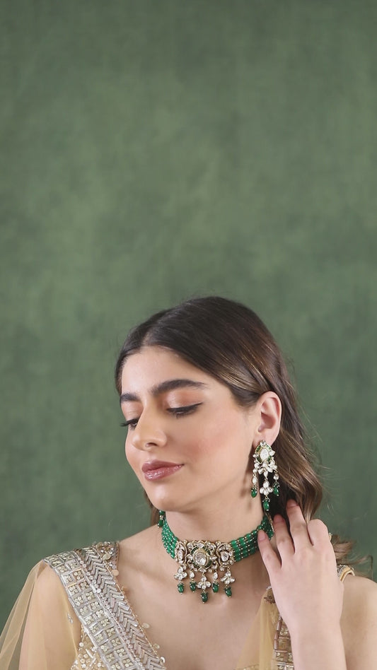 Polki & Green Jade Tumbles Bridal Necklace Set