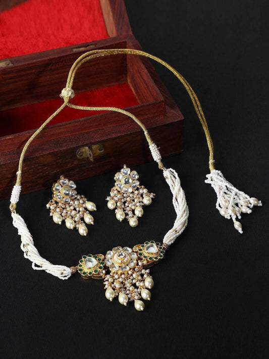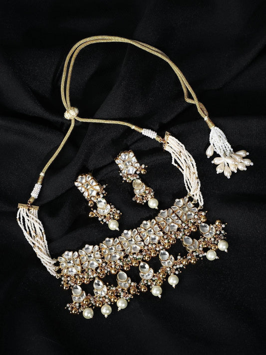 22KT Gold Plated Kundan Choker Necklace Set with Pearls For Women