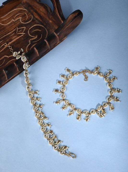 22KT Gold Plated Kundan Classic Gold Anklet For women and Girls