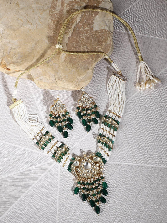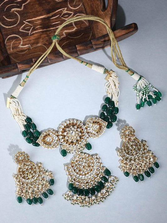 22KT Gold Plated Kundan Classic Green Beads Necklace Set