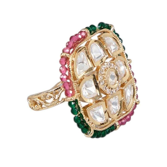 22 KT Gold Plated Kundan Ring Moissanite