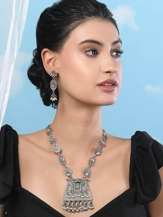 Buy Aviana Silver-Plated Artificial Stone Studded & Beaded Oxidized Necklace & Earrings