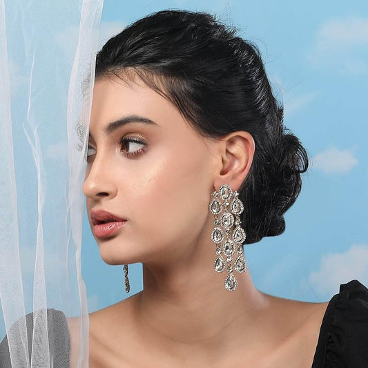 Buy Aviana Statement Crystal Chandelier Earrings in Silver Finish