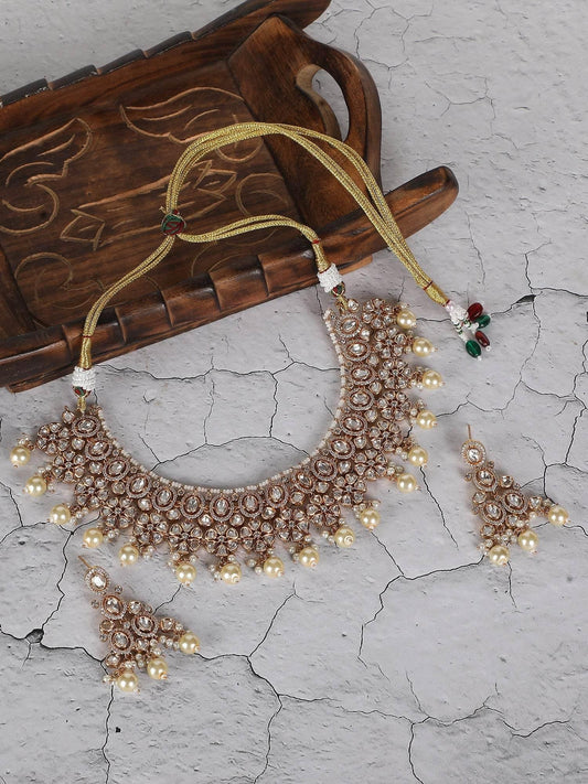 Cascading Crystal Necklace Set with Earrings & Maang Tikka