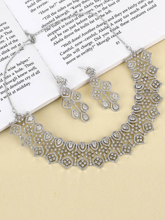 Dazzling Rhodium Plated American Diamond Necklace SetRegular price ₹8,400Regular priceUnit price / per₹12,000Sale price ₹8,400code add by subir --> 30% OFF