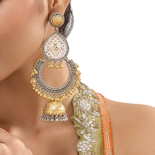 Dual-Tone Ethnic Dangler Earrings with Filigree Design & Jhumka BellRegular price ₹7,200Regular priceUnit price / per₹9,000Sale price ₹7,200code add by subir --> 20% OFF