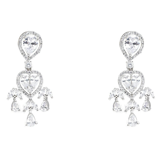 Diamonte Chandelier Earrings with Ruby and Pearl Accents