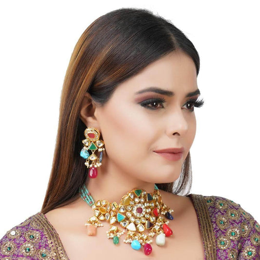 Dignified Kundan Necklace Set 22KT Gold Plated