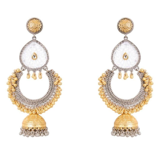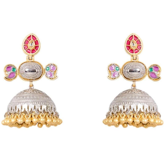 Dual-Tone Ethnic Dangler Earrings with Filigree Design & Jhumka Bell