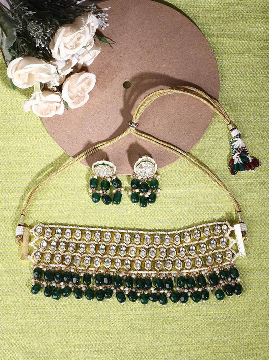 Elegant 22KT Gold Plated Kundan Green Necklace Set