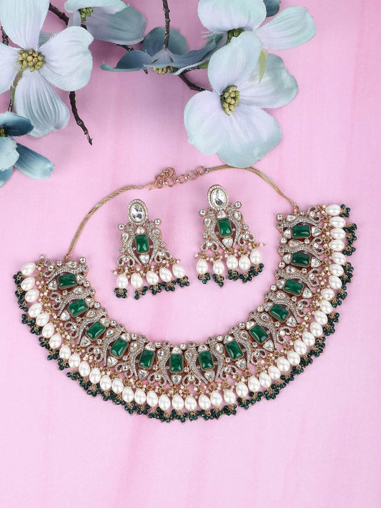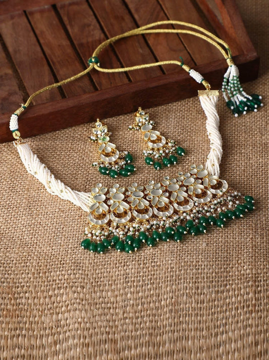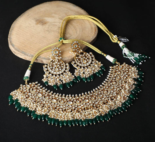 22KT gold Plated Kundan Classic Green Choker Necklace Set for women and Girls