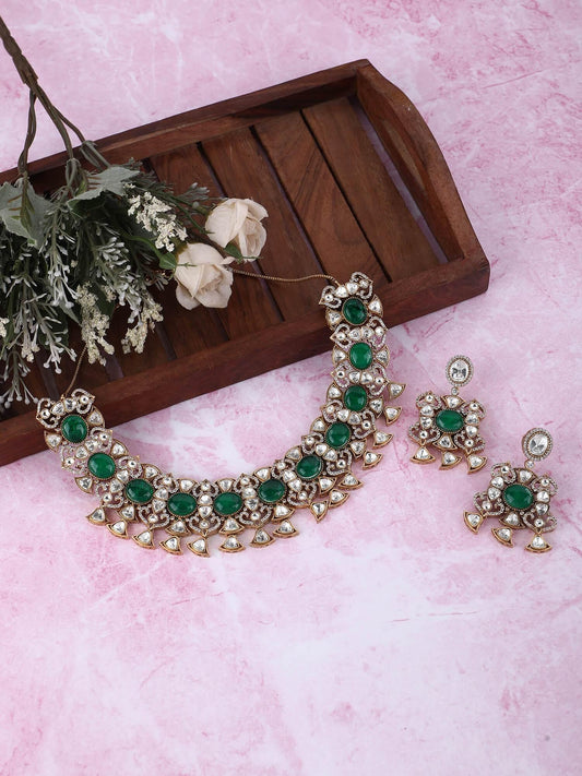 22KT Gold Plated Kundan Green Necklace Set