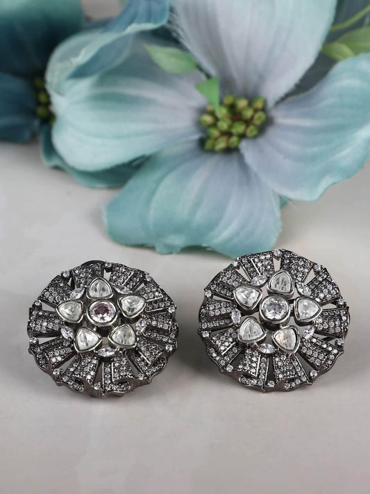 22KT Gold Plated Kundan Classic Grey Studs Earring Set