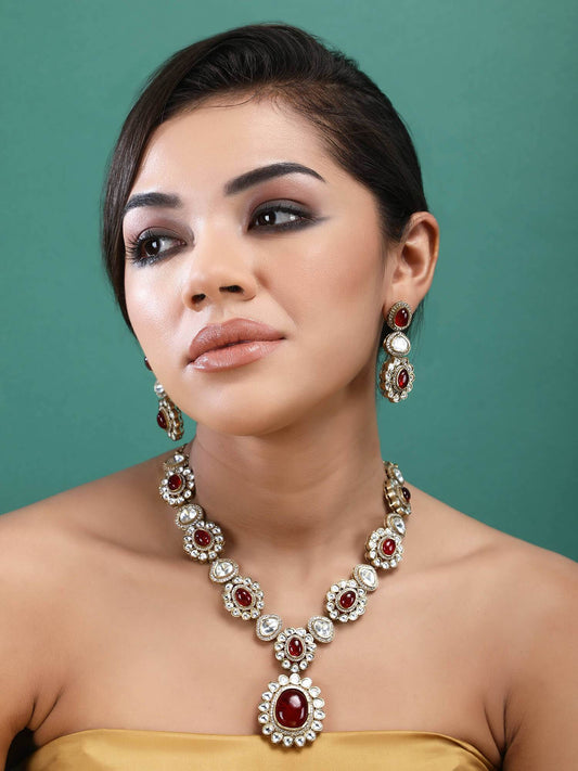 22KT Gold Plated Kundan Classic Red Necklace Set