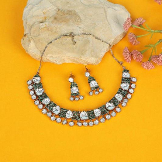 Elegant Kundan Polki Necklace Set with Emerald Accents