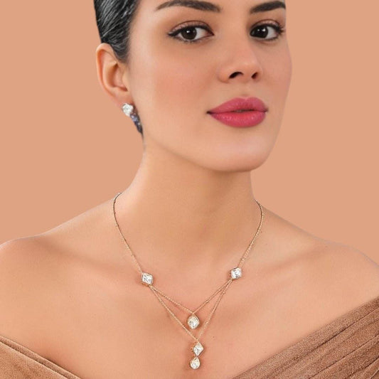 Elegant Layered Diamond Look Choker Necklace Set with Earrings