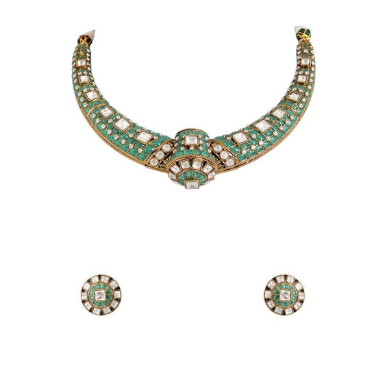 Elegant Mint Green Kundan Choker Necklace Set with Round Stud Earrings for Women