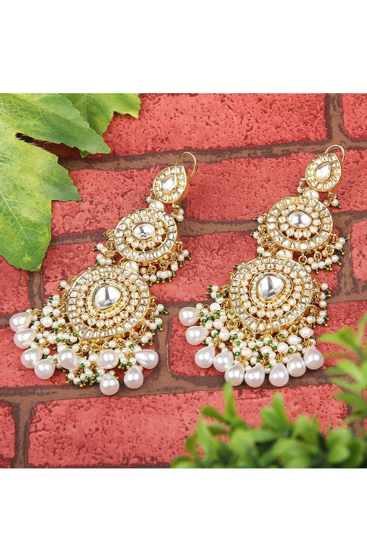 Elegant Moissanite & Mirror Finish Gold Plated Drop Earrings