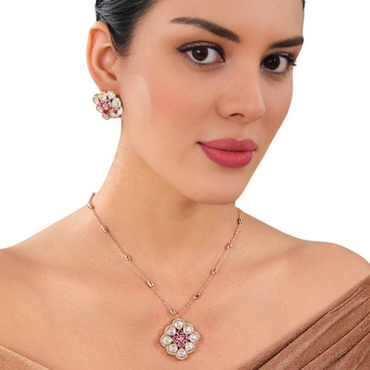 Floral Diamond-Look Necklace Set with Earrings for Women