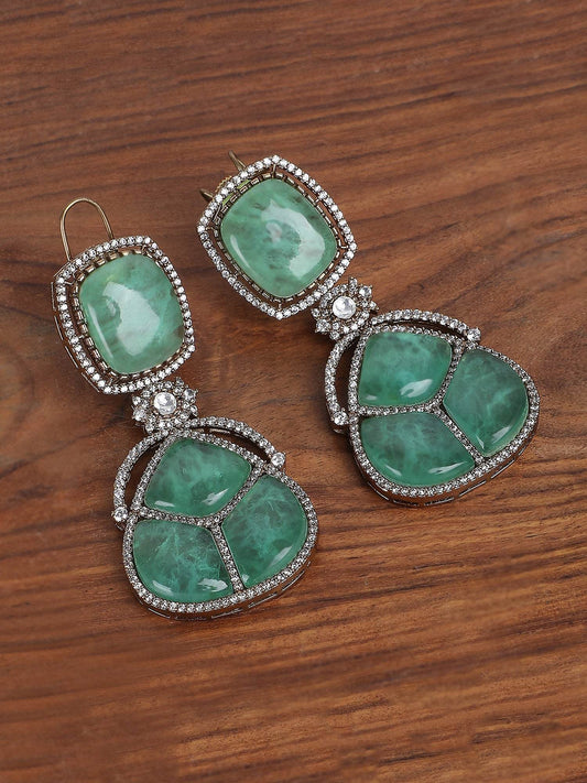 Gold Plated Green Drop Earrings For Women
