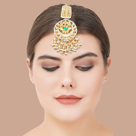 Gold Plated Green Onyx Maangtikka