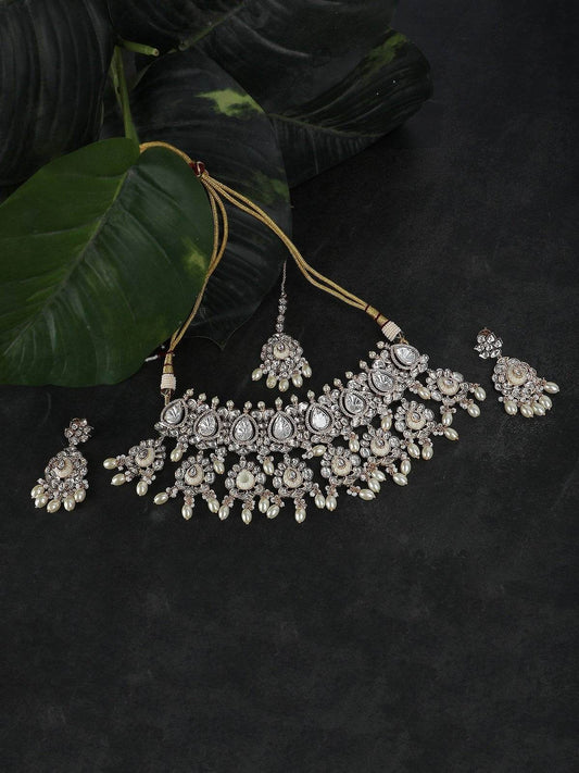 Gold Plated Kundan Choker Necklace Set with Pearl Detailing