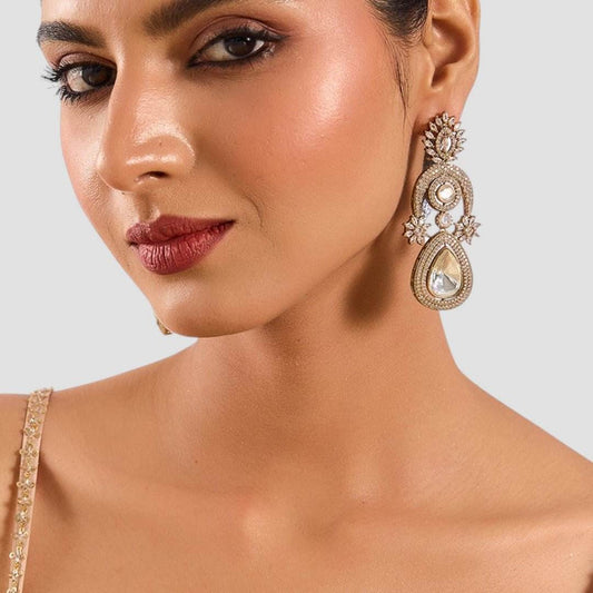 Gold Plated Kundan Drop Statement Earrings