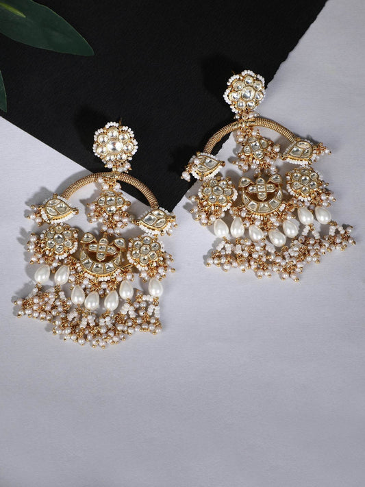 Gold-Plated Pearl Embellished Traditional Ear Chain Chandbali Earrings for Women