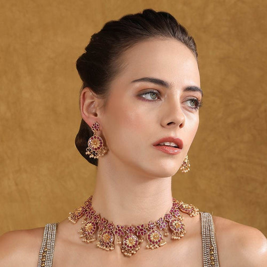 Gold-Plated Kundan-Studded & Beaded Jewellery Set