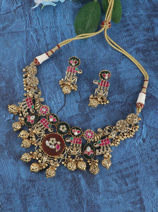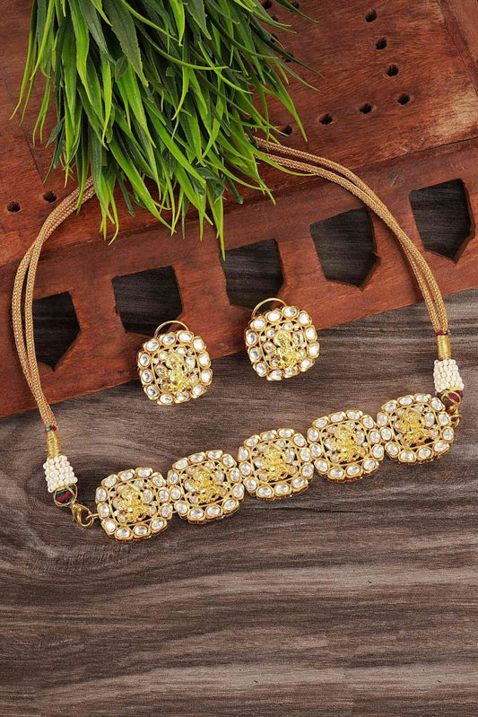 Illuminating Gold Plated Kundan Choker Necklace Seta