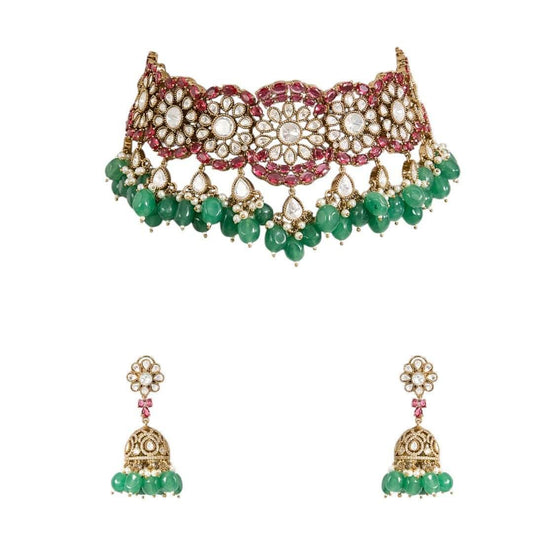 Luxury Emerald and Pearl Choker Set with Complementary Statement Earrings – Designer Women's Jewelry Set