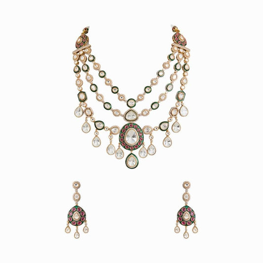 Luxurious Green and Pearl Jewelry Set for Bridal and Festive Occasions