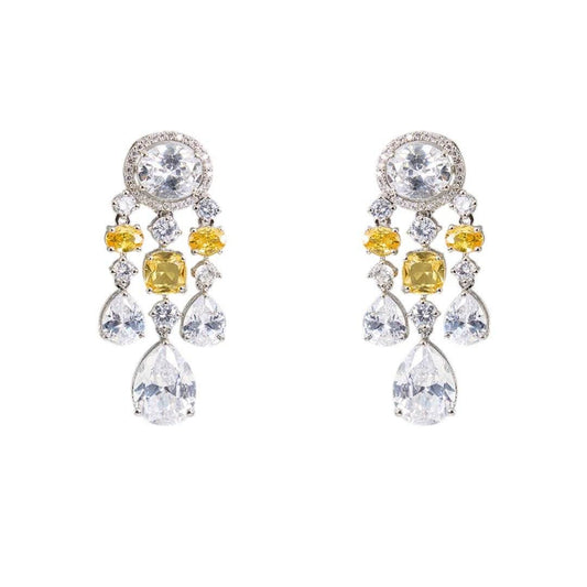 Luxury Crystal and Yellow Stone Statement Drop Earrings