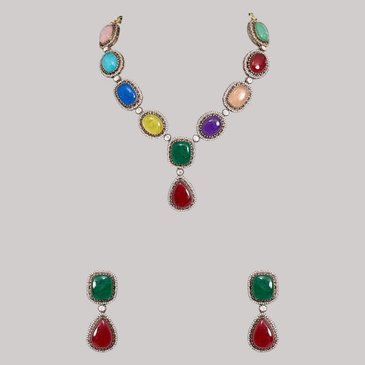 Luxury Multicolor Stone Statement Necklace Set with Earrings for Women
