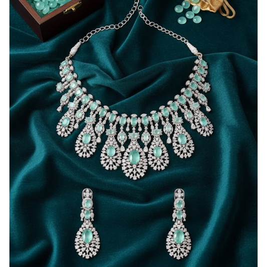 Luxury Silver-Plated Choker Necklace Set with Mint Green Stones