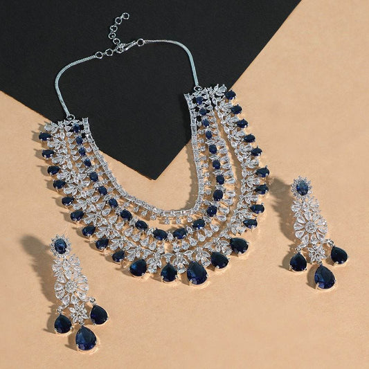 Luxury Silver Plated Diamond Choker Necklace Set with Earrings