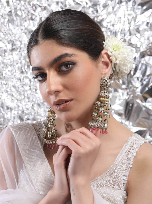 Moissanite Kundan Jhumka Earrings – Traditional Festive Jewelry