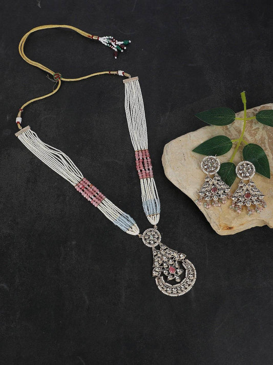 Multi-Strand Beaded Necklace with Antique Pendant & Matching Earrings