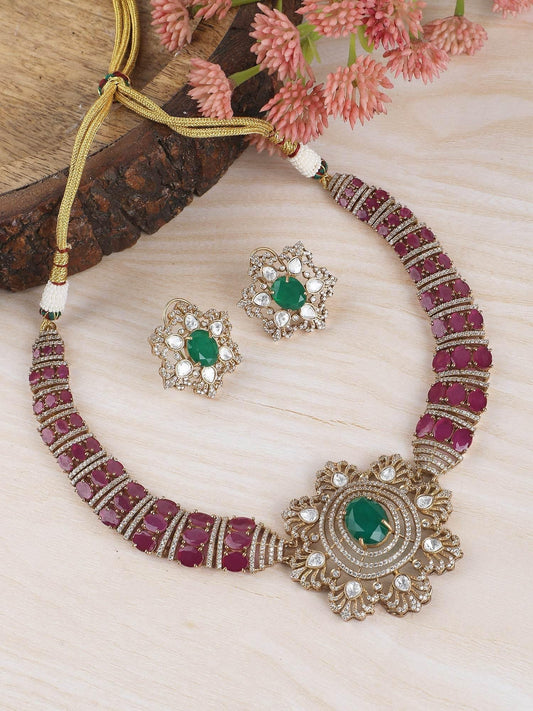 Aristocratic Rhodium Plated American Diamond Necklace Set
