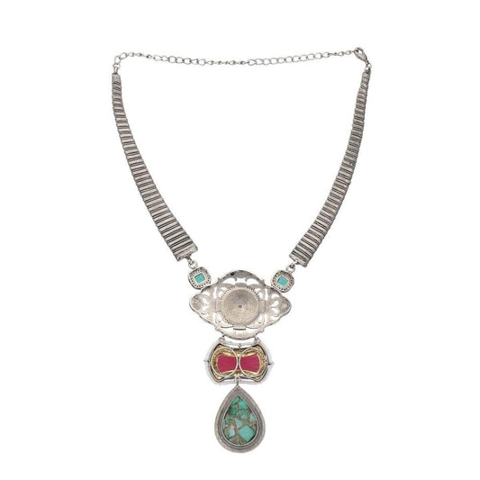 Antique Tribal-Inspired Silver Necklace Set with Gemstone Accents