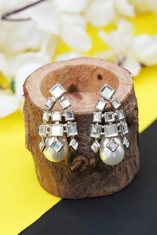 Antique Silver-Plated Kundan Necklace Set with Pearl Drops