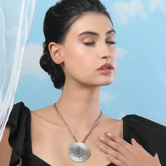 Aviana Oxidized Silver Tribal Sun Pendant Necklace