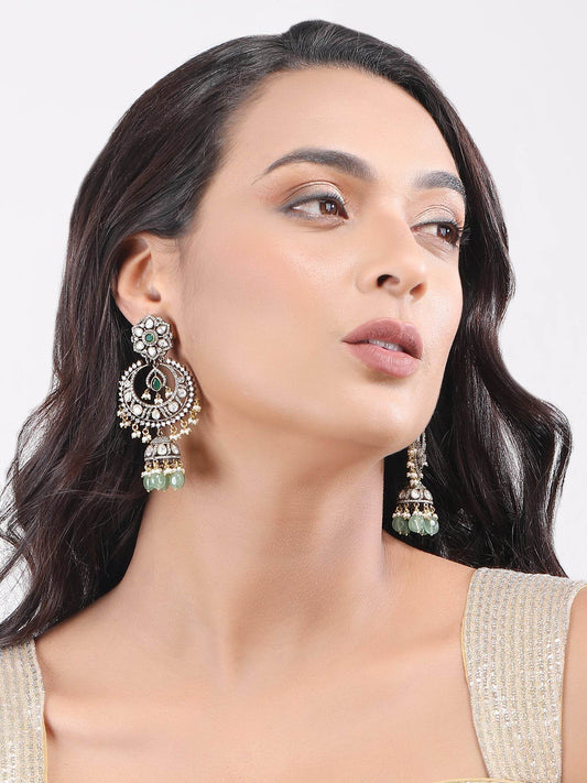 Rhodium-Plated American Diamond Floral Drop Earrings for Women