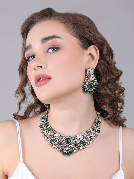 Rhodium-Plated American Diamond & Zircon Necklace Set